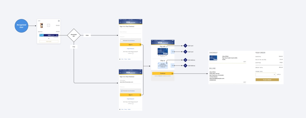 In 2016, Visa Checkout acquired a new design system. It was created to replace the Visa Checkout legacy design and to unify all Visa digital products under one design language. This redesign project was the first interface implementation of the new system.