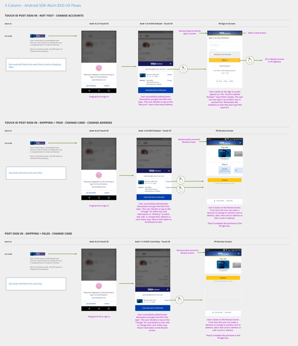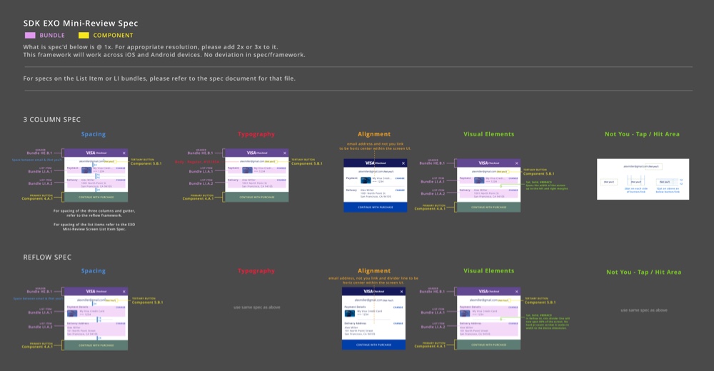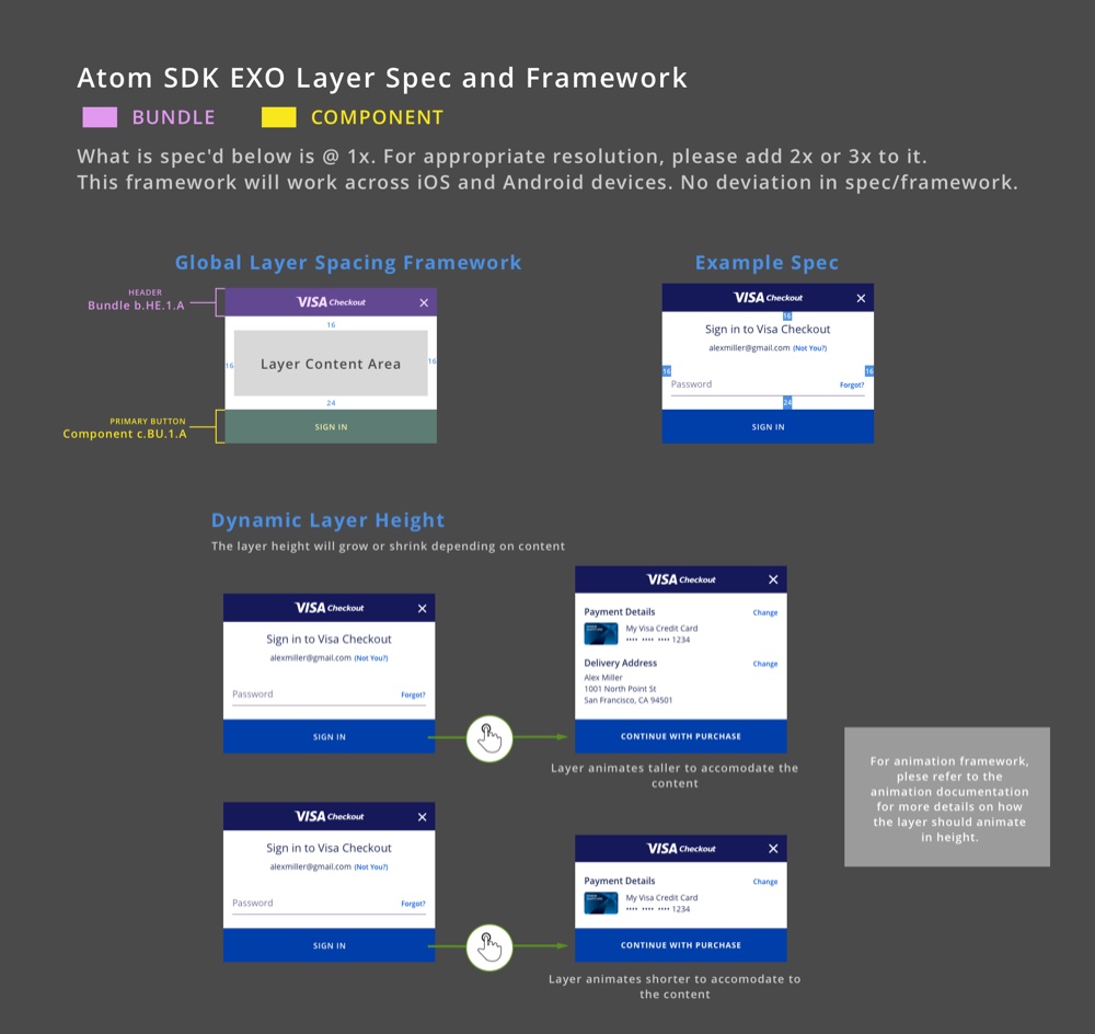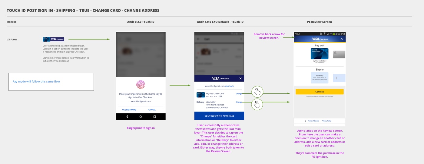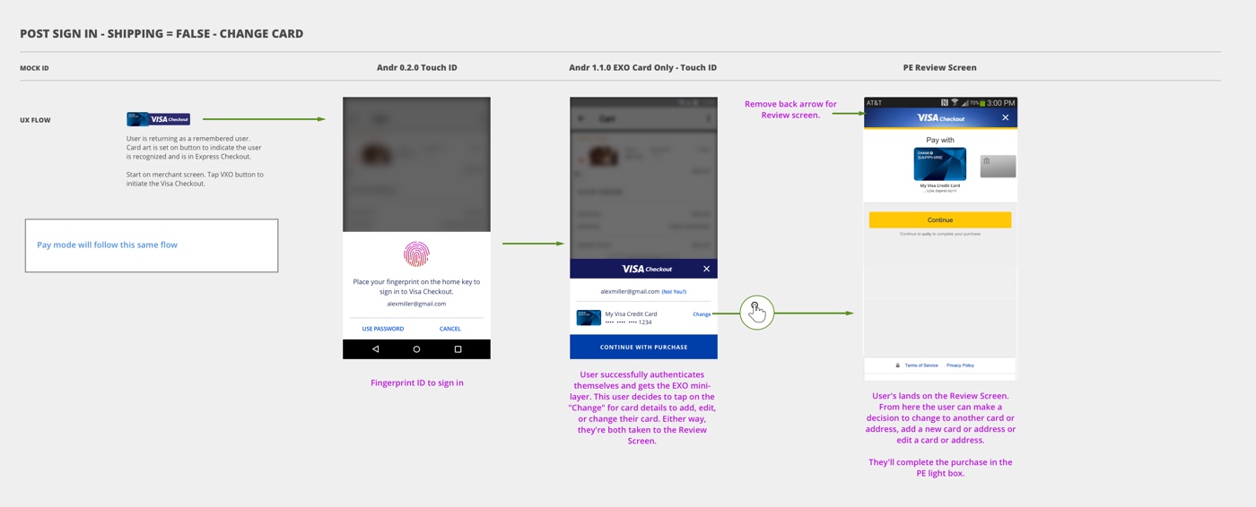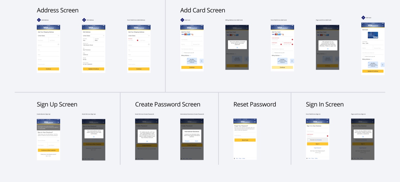 - Designing this interface while restricted by Visa Checkout legacy code base for both the user experience and visual language