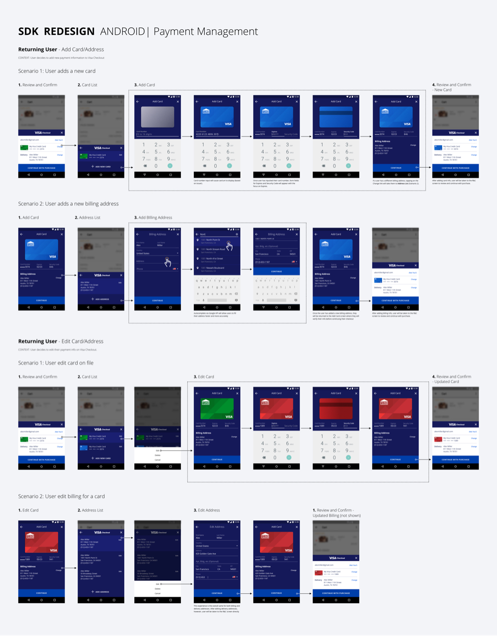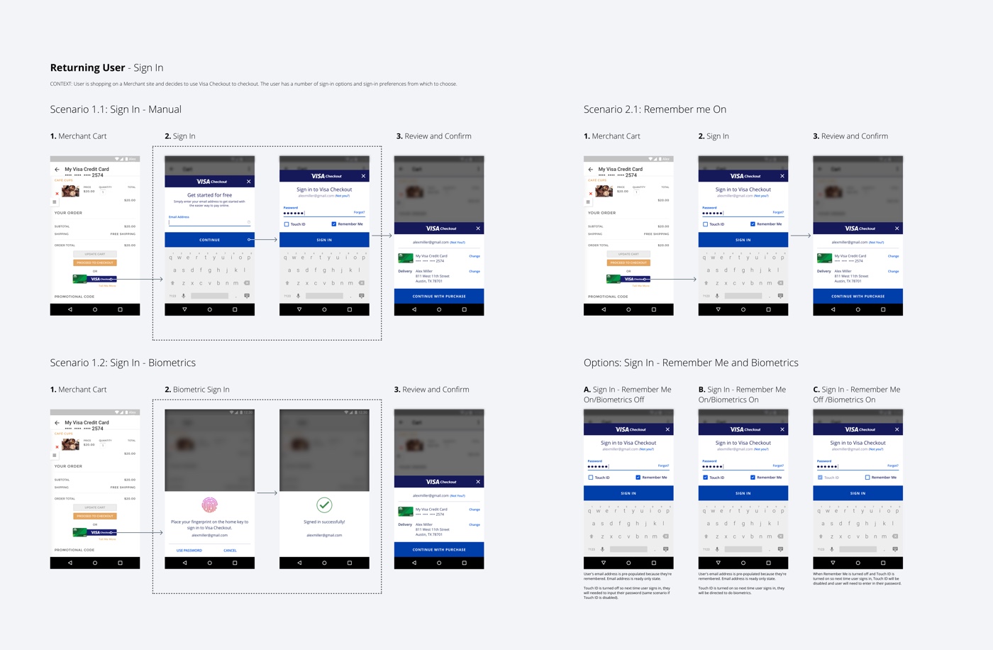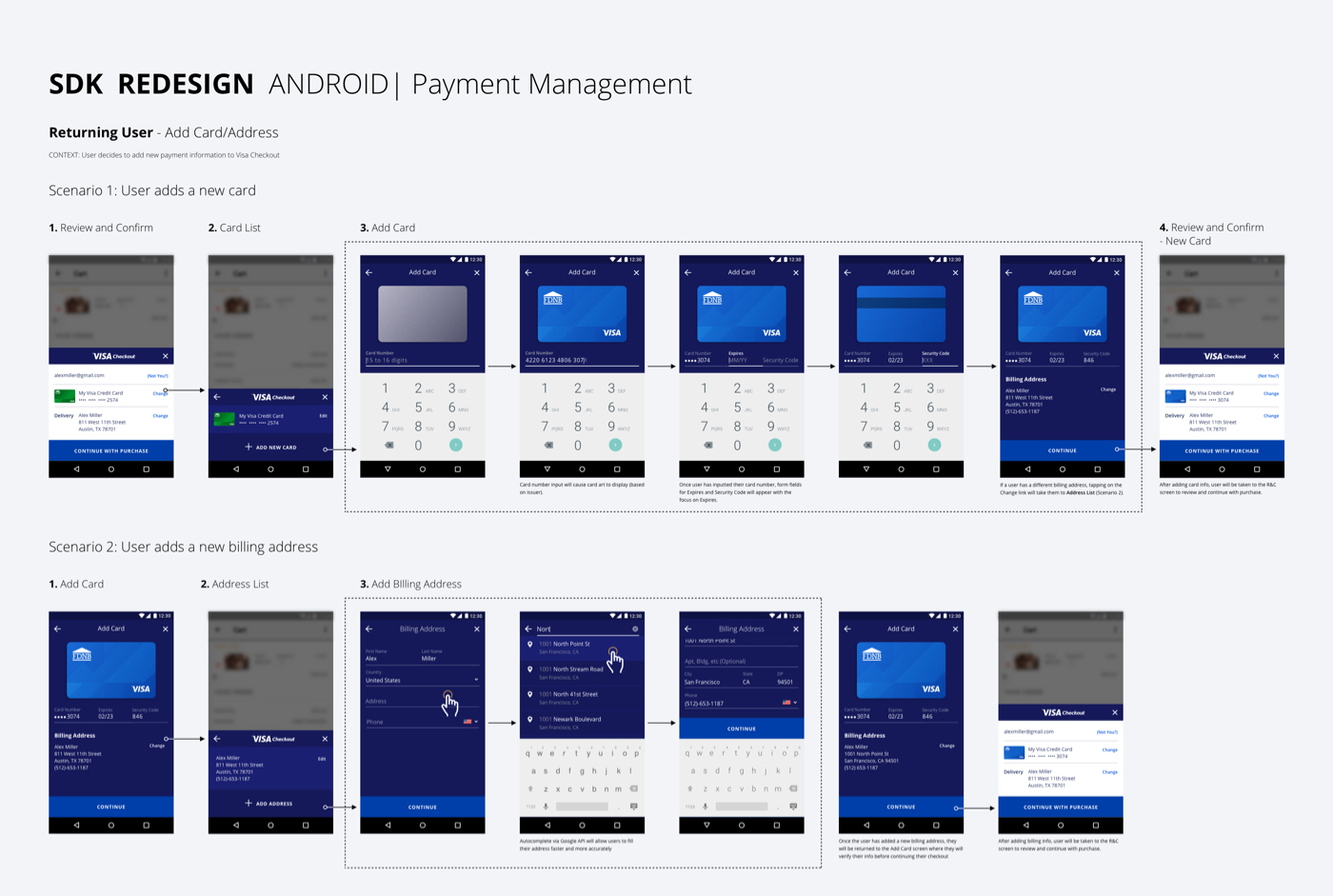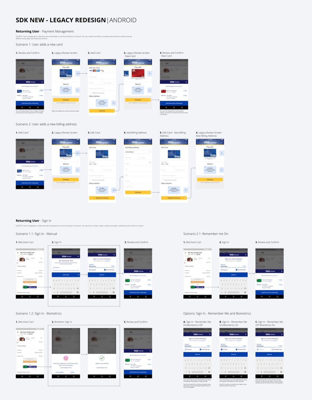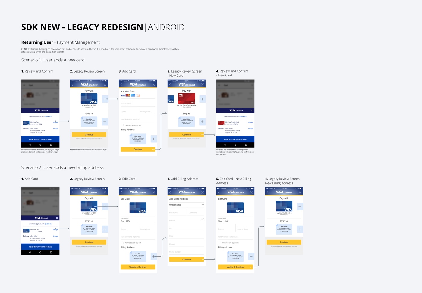 - Designing this interface while restricted by Visa Checkout legacy code base for both the user experience and visual language