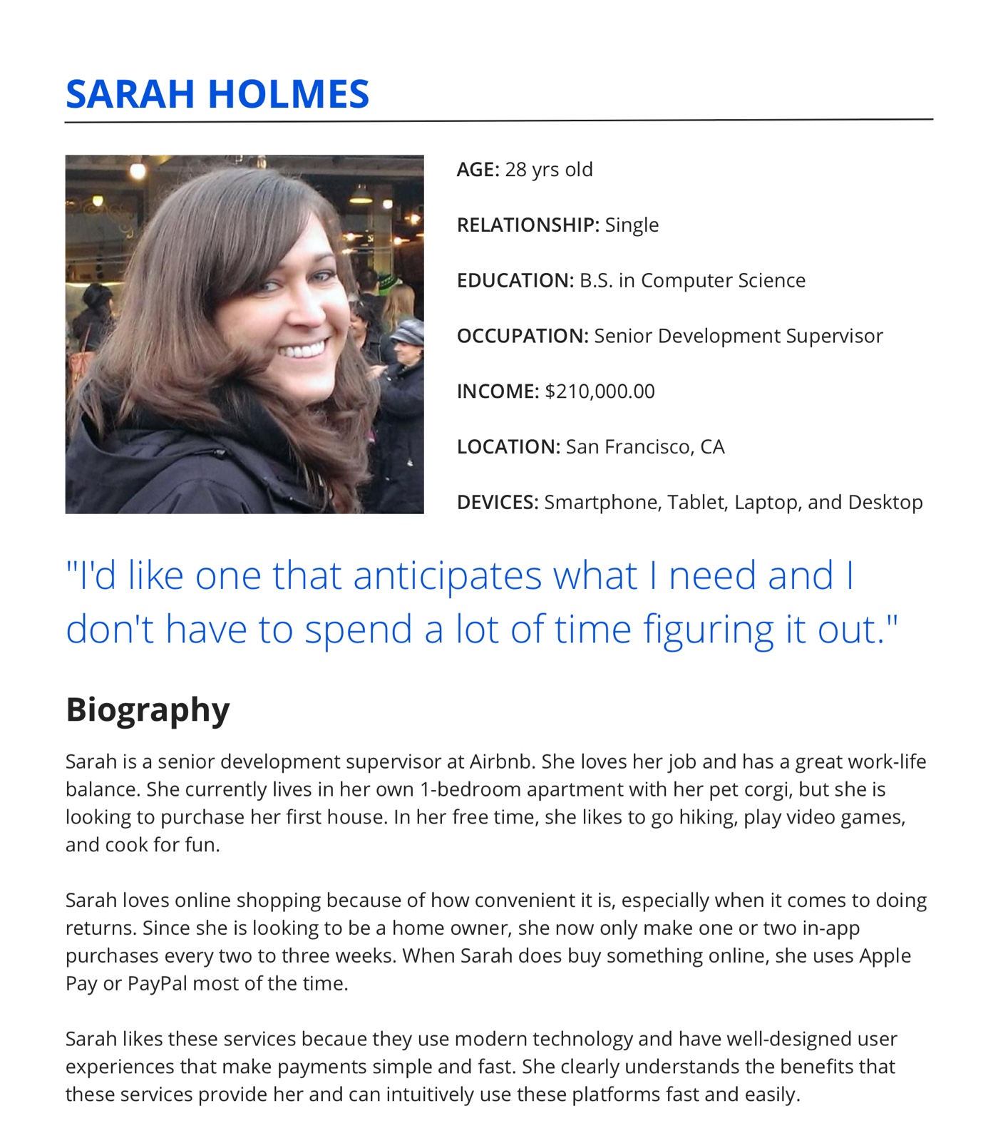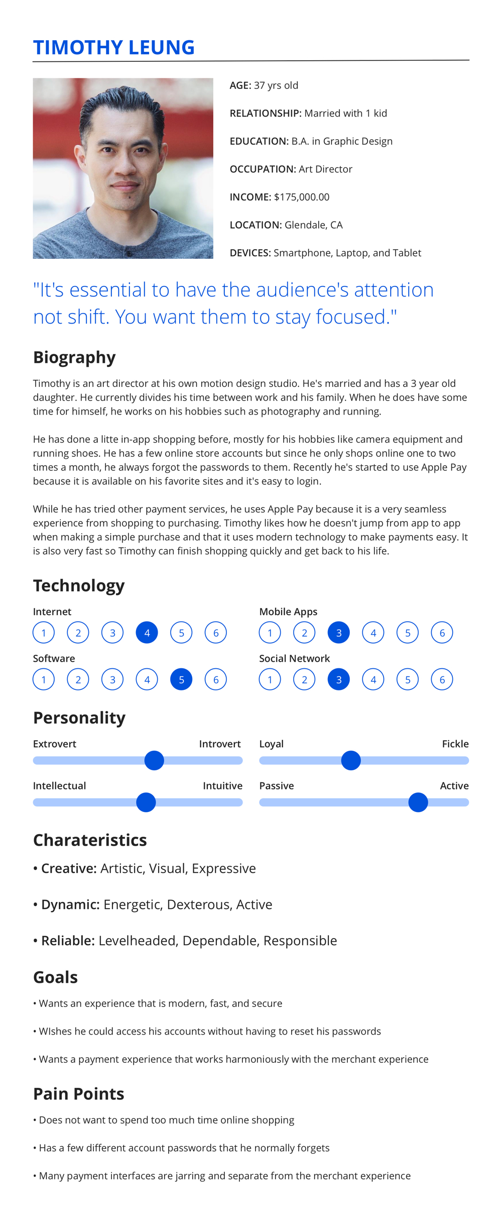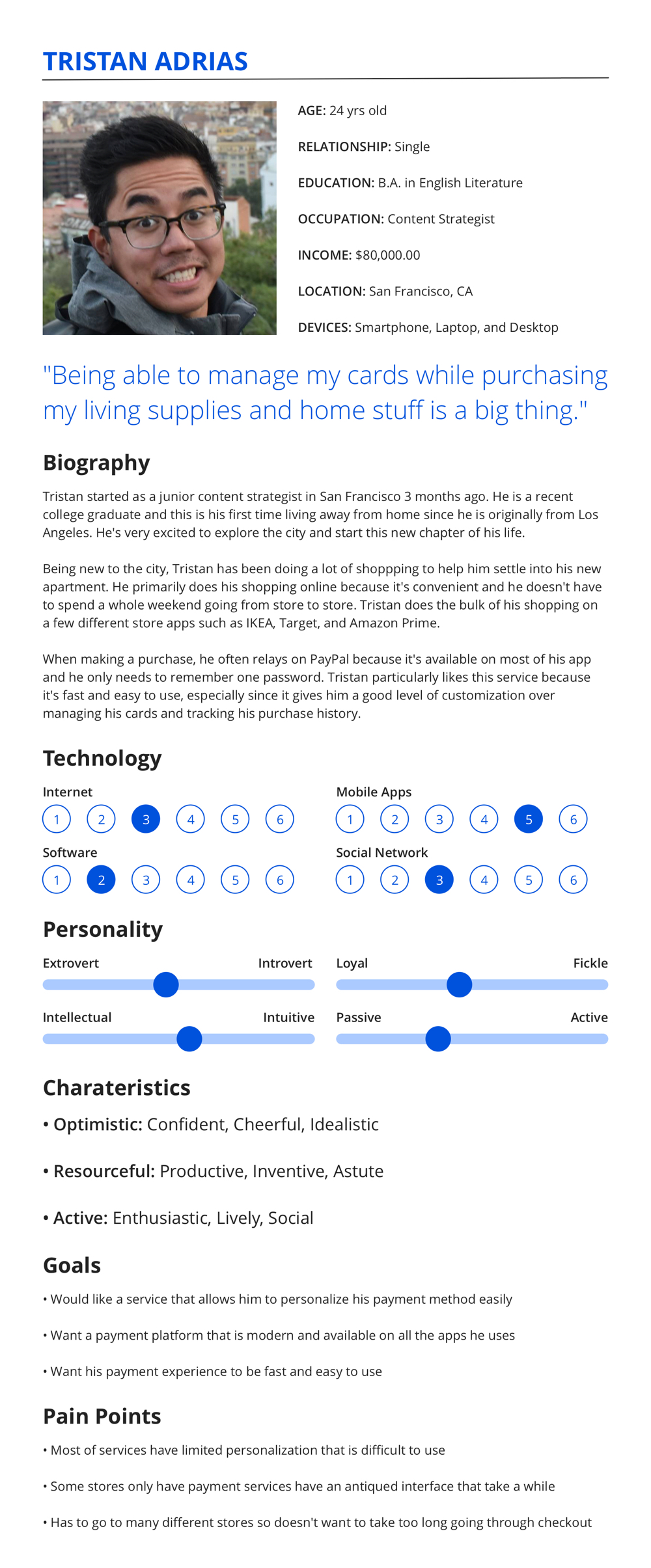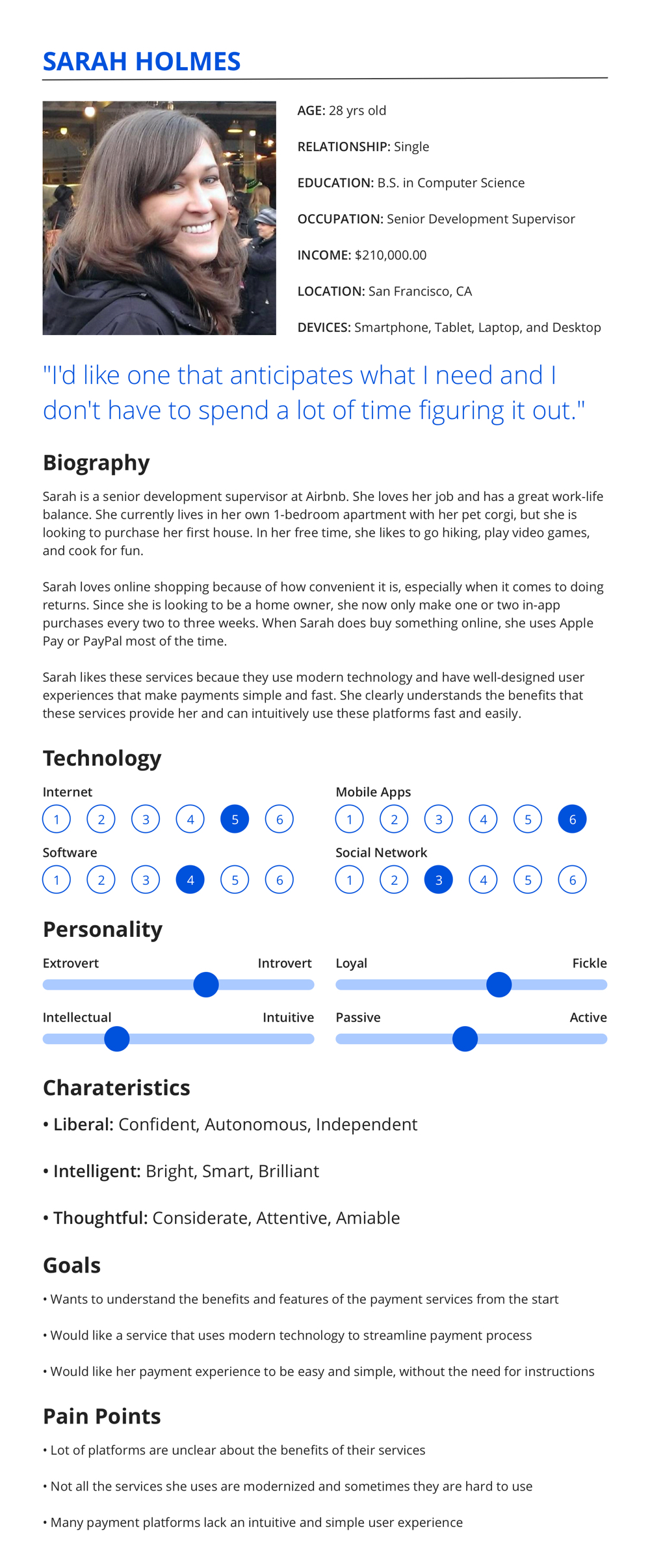 - Interviews for User Persona Profiles found that users prefer payment services that provide easy customization, modern login security, and easy-to-use interactions for an overall simple and seamless experience