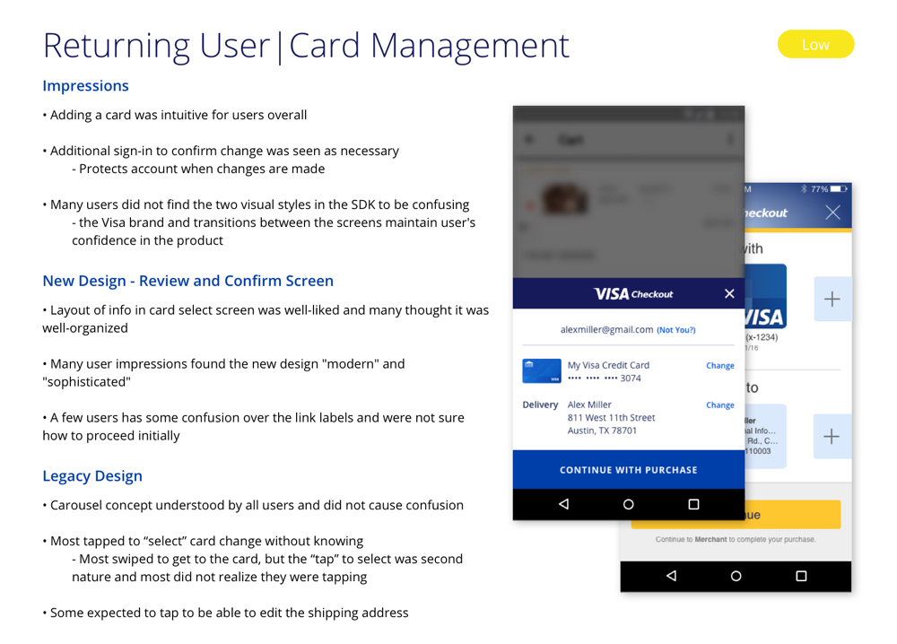 - The majority of users found the redesigned card management and checkout experience to be intuitive and easy to use